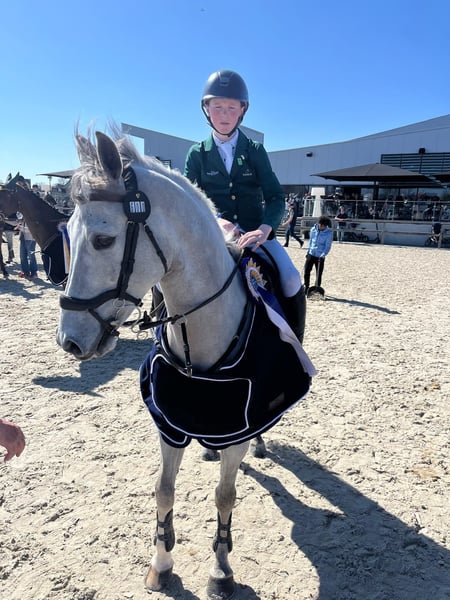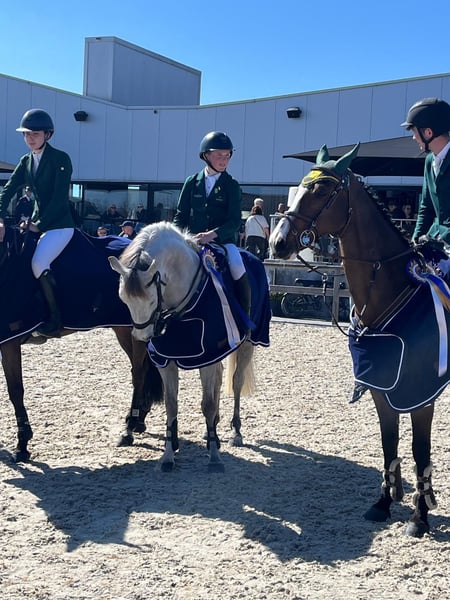 Dit is een unieke kans in het leven voor elk kind om een 148 cm pony te kopen. Hij is zeer kindvriendelijk. Western Ranger is een fantastische springpony met een enorme carrière voor zich. Met veel galop en een grote pas springt hij momenteel met gemak op 1.30 m-niveau. Met al ervaring in Nations Cups bewijst hij zijn kwaliteit en zal hij uitblinken op grote parcoursen in kampioenschapsarena’s. Hij is snel van de grond en heeft bovendien een hart van goud om zijn ruiter te helpen. Hij is een bloedpony met veel uithoudingsvermogen om meerdere rondes/dagen competitief te springen. Hij sprong een foutloze in een sterke 148 Dublin Horse Show-kwalificatie en zal ongetwijfeld consequent kwalificeren voor de Grade A/AJ-kampioenschappen. Winnaar van de Europese Zilveren Medaille 2025 en Reservekampioen op RDS 2025.