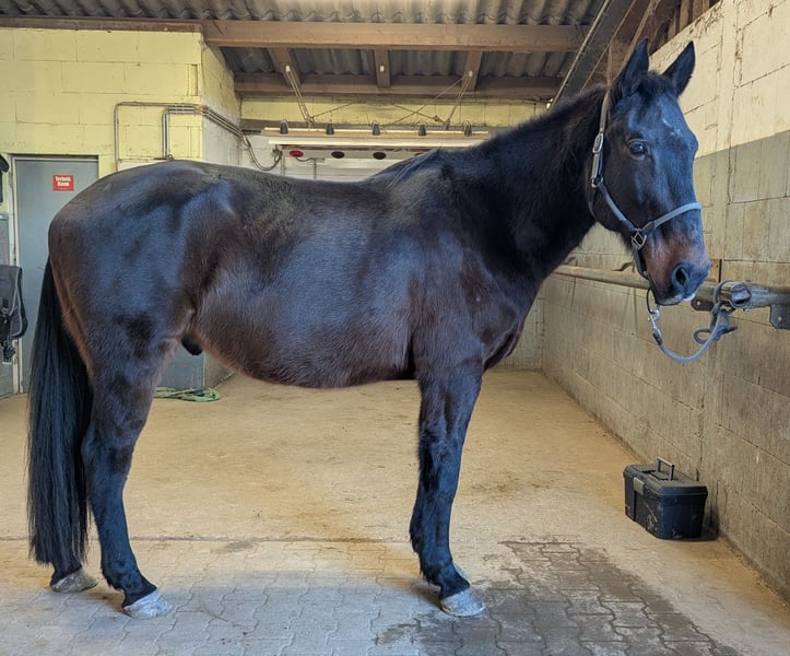 Traum-Charakter sucht Endplatz Wegen Aufgabe des Reitsports sucht Diamond ein neues Zuhause. Er ist ein super toller Freizeitpartner! Sensibel, freundlich, motiviert bei der gemeinsamen Arbeit. Geboren 2014 und ca 1.70 Stk. Er liebt die Haltung in der Herde und so viel Auslauf wie nur möglich. Aktuell lebt er in einem Offenstall in einer Wallachgruppe. Zeigt sich hier verspielt, sehr sozial und nett (rang mittig). Er freut sich, wenn er eine feste Bezugsperson hat. Sein Reiter sollte fein und einfühlsam sein. In der Bodenarbeit macht er super mit. Durch seine sensible Art wahnsinnig fein über Körpersprache und Energie zu lenken. Er liebt Spaziergänge und Geländeritte und ist bei jedem Abenteuer durch die Natur dabei. Momentan 4 Fach beschlagen. Regelmäßig Tetanus geimpft, Zähne zuletzt Ende Mai 2025 gemacht. Im letzten Jahr hat er Equines Asthma entwickelt. Mit bedampftem/gewaschenem Heu und angepasstem Stallklima sollte das keine Symptome mehr verursachen. Ich wünsche mir für ihn einen Endplatz, wo genug Zeit vorhanden ist, um ihm die Aufmerksamkeit zu schenken, die er verdient hat und ein festes Familienmitglied sein darf. Weiteres gerne in einem Telefonat und persönlichem Kennenlernen. Gesamtes Zubehör kann gerne mit erworben werden. (Inhalator, Regen-, Fliegen-, und Abschwitzdecken, Halfter, Trense, Kappzaum, Reitpad, Schabracken, etc.) Kein Notverkauf, keine Händler oder Reitschulen.