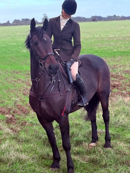 RAMBO Handsome 16.2hh Irish 2011 bay gelding. If you’re looking for a seasoned hunter then this is your horse! He will go first, last, stand alone, and will do it for any passenger! This super lad loves his hunting and has several seasons under his belt, he will cross ANY country and stays mannerly and easy at all times. He’s a machine over a ditch & a hedge and gives you the best feel. Despite him being a 10/10 class hunter, he produces a lovely test and is a nice allrounder, will jump coloured fences and shows willing at everything he does. He will go out in the biggest of traffic alone and in company, unbothered by everything and super in open spaces. A proper experienced hunter and a very quiet ride, suitable for all of the family. Rambo is a kind horse on the ground, easy to have around.