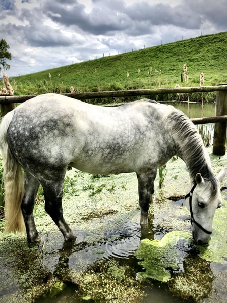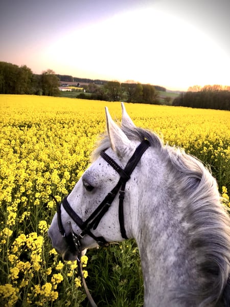 Schweren Herzens verkaufe ich, aus Zeitmangel, meinen 16 jährigen Schimmelwallach. Er ist ein irisches Pferd mit Original Pass. Ein Herzenspferd, dass gerne nur ins Gelände geritten werden möchte. Er ist ein absolutes Verlasspferd, jedoch schon von der schnelleren Sorte (alleine auf Grund seines Körperbaus). Auch regelmäßig lange Ausritte im Schritt würden dem kleinen Schimmelchen gut gefallen. Auch das Reiten auf Jagden und das Führen an einer Hundemeute als Equipage-Pferd wären möglich. Er ist kinderlieb, verladefromm, Schmiedefromm, läuft aber aktuell barhuf. Eigentlich macht er alles mit. Er ist kein schmales Pferd, aber auf Grund seiner Größe von ca. 1,55m kein Gewichtsträger. Er ist sehr robust, unverbraucht und war nie lahm. Die Fotos sind gesammelte Werke aus den letzten 12 Jahren. Ich wünsche mir ein liebevolles neues zu Hause in dem er die Aufmerksamkeit bekommt die er verdient. Platz vor Preis.
