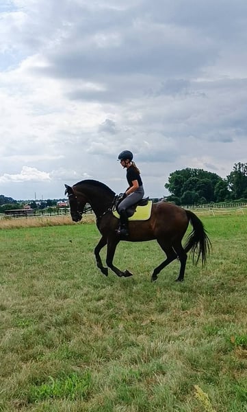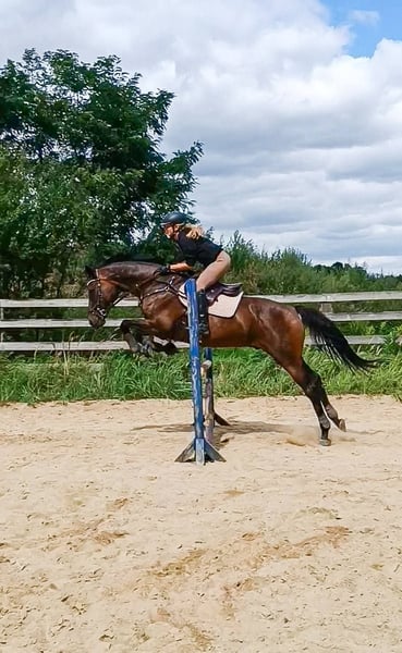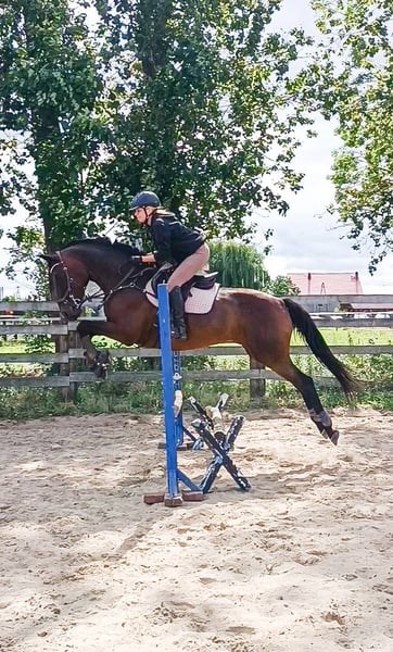 Sprzedam lub zamienię wałacha. Okolice Lubina (dolnośląskie) Imię Fear draiochta (u nas Fred) Rasa irish Sport horse (irlandzki folblut) Posiada irlandzki paszport, zarejestrowany w dzhk oraz ARiMR. Wiek 17 lat (17.04.2009) Matka Lady Dawn Ojciec Loughehoe guy Wzrost ok. 162/163 cm Koń zajeżdżony. Koń dla osoby na poziomie min. Brązowej odznaki jeździeckiej. Nie nadaje się dla początkujących. Będzie fajny do ambitnej rekreacji dla kogoś kto już swobodnie galopuje. Wcześniej startował w WKKW. Obecnie roztrenowany. Pod siodłem energiczny, ale do ogarnięcia. Potrzebuje regularnej pracy. Chodził w tereny, brał udział w Hubertusach. Delikatny na kontakcie, wymaga delikatnej, stabilnej ręki. W skokach mocno idzie na przeszkodę , nakręca sie. Z ziemi grzeczny. Do ludzi bardzo przyjacielski. Nie gryzie, nie kopie. Nie tka, nie łyka. Zna myjkę, golenie, zabiegi fizjo. Przy weterynarzu i kowalu grzeczny. W stadzie dominujący, ogierzy się, kryje klacze (zbadany, zdrowotnie w tej kwestii wszystko okej) Obecnie trzymamy na wolnym wybiegu z dwoma klaczami, wcześniej duże stado mieszane. Zimą golony, derkowany. Ponad rok temu (listopad 2024) przeszedł kontuzje ścięgna prawej przedniej nogi (uszkodzona głowa dodatkowa ścięgna mięśnia zginacza głębokiego palca) Kontuzja całkowicie wyleczona, nie ma przeciwwskazań od weterynarza do ruchu. Rozkuty od stycznia 2026, wcześniej był kuty na przody. Prawdopodobnie przy intensywnym treningu wskazane będzie ponowne podkucie. Koń ma nakostniaka na wewnętrznej stronie prawej przedniej nogi, wet mówi że w niczym nie przeszkadza. Blizna na lewym tyle (nie mam pojęcia co tam się stało, już go z tym kupiłam, w niczym nie przeszkadza) Sprzedaż z powodu problemów w stadzie oraz braku czasu. (stajnia przydomowa, terroryzuje mi dwie starsze klacze). Koń z tych które potrzebują pracy, ruchu i a ja nie jestem w stanie mu tego zapewnić. Cena 15 tyś do negocjacji.