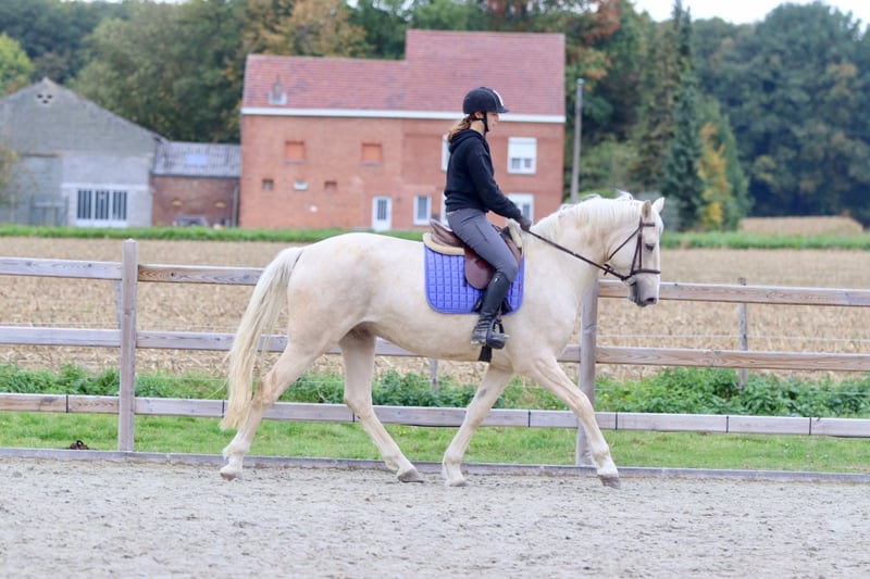 ✨ Unique color, unique size! 🐴 Breed: Irish Sport Horse 📏 Height: 16.1 hh 📅 Age: 4 years 💪 Build: very broad and sturdy - Well-behaved under saddle but still green in training. - Walk and trot are well-established; he moves nicely relaxed at the lower gaits. - Canter needs a bit more stability. - Extremely gentle in handling — a real cuddly teddy bear 🥰 (would crawl into your pocket!). - Gets along well with other horses both in the arena and in the pasture. This handsome gelding, due to his age and build, is not suitable for a beginner rider but has enormous potential for someone with some experience. Ideal for someone looking for an eye-catcher that is still fully customizable! 📞 More info: +32 475 68 22 43 🎥 For videos: ask for our website.