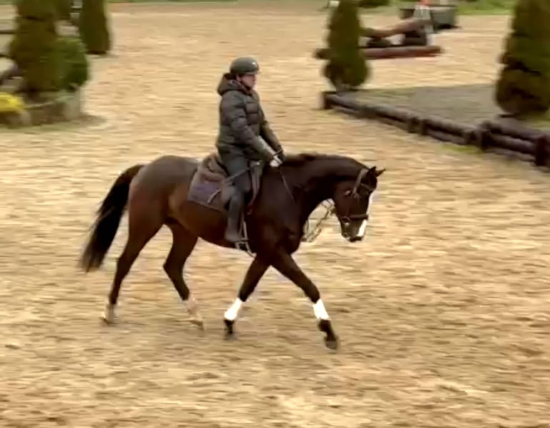 Large-framed 4-year-old gelding with a high Thoroughbred percentage, approximately 16.9 hh. Due to his growth, he is being gently backed and still needs time to mature. He is already familiar with cross-country jumps and would likely make a good hunting horse. To allow him to continue growing and maturing, he has been on pasture since early November and is currently only available for direct sale from the field. That is why the price is so favorable. Transport from Ireland must be arranged independently. Please contact only via WhatsApp at +49 173 5858104.