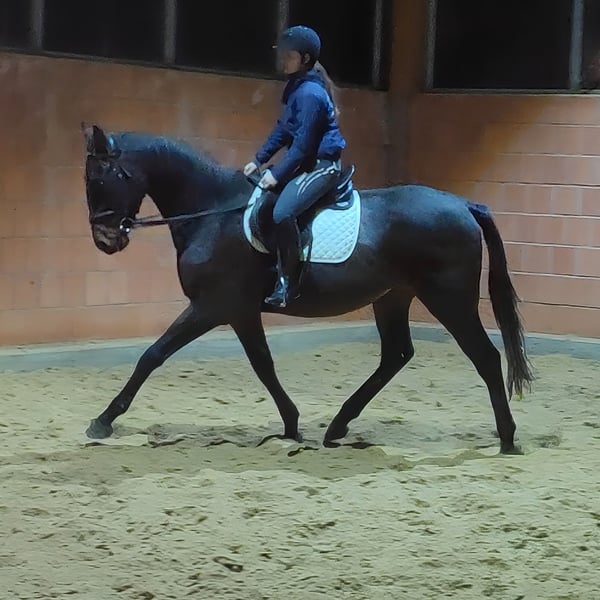 LaLeLu is an exceptionally friendly gelding approximately 1.74 meters tall, who, despite his young age of just 3 years, already has a very strong character. He is highly trainable and eager to learn new things. He is already experienced in indoor and outdoor riding, as well as in the terrain. He is accustomed to tractors, trucks, and other farm machinery. He also gets along well with dogs. He has been ridden effortlessly by girls. If desired, he can be sold with a complete set of brand-new equipment for a small additional fee. Trade-ins and transportation can be arranged. For further information, please call +49 177 4289729. Written inquiries will not be answered. Calls from blocked numbers will be automatically rejected.