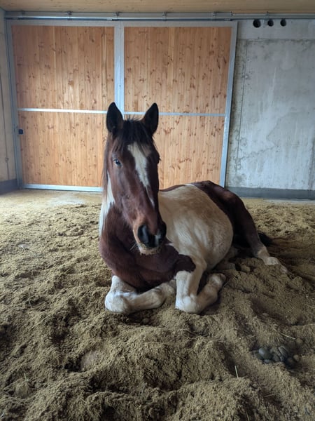 Wir verkaufen unseren 4 jährigen, Braunscheck Wallach Loki. Er ist ca. 155cm groß. Anfang März 2025 haben wir ihn angeritten gekauft und ihm nochmal aufgrund seines Alters und seinem körperlichen Zustand eine Reitpause gegeben. In der Zeit wurde er longiert, auch über Stangen und Cavalettis, haben Bodenarbeit und Freiarbeit gemacht. Ich hatte ihn als Handpferd dabei und war auch mit ihm Spazieren. Er ist sehr unerschrocken und geht auch alleine ins Gelände. Seit Mitte November habe ich langsam begonnen ihn im Gelände Schritt und Trab zu reiten. Er läuft Barhuf und ist sehr brav beim Hufe bearbeiten. Er zeigt sich bei allem immer sehr bemüht und hat einen freundlichen Charakter. Loki ist dem Menschen sehr zugewandt und möchte gearbeitet werden. Bei uns steht er in einer gemischten Herde im Offenstall, das funktioniert sehr gut. Wer also ein freundliches, aufgeschlossenes Pferd sucht zum selbst ausbilden, ist bei ihm genau richtig. Bei Interesse bitte melden.