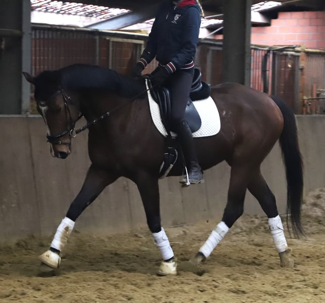 Zum Verkauf steht hier ein 164 cm großer Sporthorse Wallach Rocco ist 5 Jahre alt und und ein Meter 164 groß zur Zeit steht Rocco bei uns auf Teilbeschlag und lebt aktuell in einer gemischten Herde in Offenstall Rocco ist stets bemüht es seinen Reiter recht zu machen so wie im Gelände als auch bei der Platzarbeit macht er einen guten Job sie suchen ein ausgeglichenes Hobby und Freizeitpferd bei weiterer Förderung auch für kleine Tierturniere geeignet dann schauen Sie sich gerne diesen tollen Wallach an für das Vorstellen und Probereiten unserer Pferde berechnen wir eine Gebühr von 20€ Wir bitten um ihr Verständnis eine klinische Ankaufsuntersuchung liegt aktuell vor und ist in Ordnung weiteres gerne unter 017227 34811.
