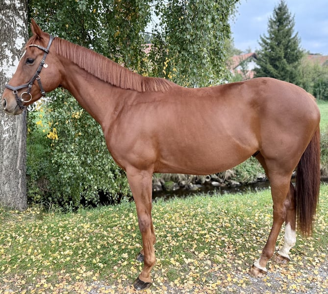 Mister McDreamy xx ist ein 5-jähriger irischer Blüter. Für sein junges Alter ist er ne wirklich coole Socke, sowohl beim Ausreiten als auch mit Reitanfängern. In der Dressurarbeit benötigt er eine feine Hand. Dreamy hat bereits erste Turnierluft geschnuppert und konnte sich mit einem 14 jährigen Mädchen direkt mehrfach die vorderen Plätze sichern. Egal ob Jagd, Geländetraining, mit Anfängern an der Longe oder am langen Zügel alleine/in der Gruppe ausreiten, Dreamy bereitet jeden Tag Freude. Im Umgang ist er ein wahrer Schatz und möchte am liebsten den ganzen Tag schmusen. Ich kann mir Dreamy gut als Familienpferd oder auch im Schulbetrieb vorstellen. Aktuell steht er mit 4 Stuten in einer Herde. Kennt Offenstall und Boxenhaltung. Schmiede- und verladefromm. Aufgrund eines zufälligen HWS Befundes, welcher ihn in der täglichen Arbeit nicht einschränkt, unter Wert abzugeben. Gute Röntgenbilder von 1/24 liegen vor. Um Reittourismus zu vermeiden fällt eine Gebühr zum Probereiten von 30€ an, welche beim Kauf natürlich erstattet wird. Für weitere Informationen/Videos nehmen Sie gerne Kontakt mit mir auf. 015146680105