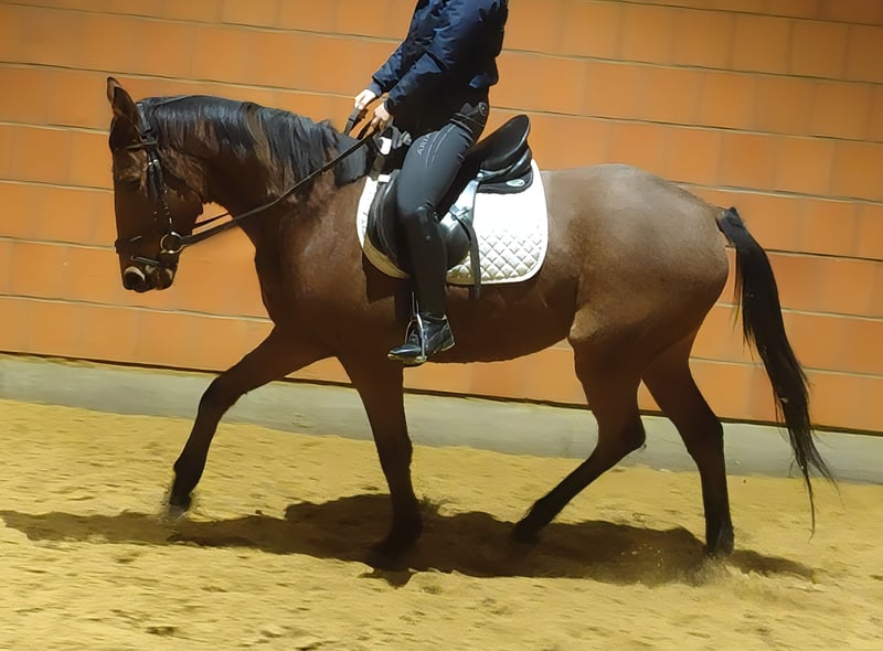 Sehr entspannter 5 j ca. 165 cm großer Wallach der auch Anfängern und Kindern ein sicheres Reitgefühl vermittelt. Reiterfehler verzeiht er. Wir könnten uns auch gut eine Verwendung in einem ( vernünftigen) Schulbetrieb vorstellen. Auch eine Ausbildung zum Therapie Pferd wäre denkbar. Inzahlungnahme und Transport möglich. Bei Bedarf gegen geringen Aufpreis mit kompletten neuen Zubehör abzugeben. Tierärztliche Ankaufsuntersuchung kann auch durch Ihren eigenen Tierarzt inklusive Röntgen und Blutuntersuchung erstellt werden. Wir freuen uns auf Ihren Anruf unter 01774289729. Schriftliche Anfragen werden Nicht beantwortet. Anrufe mit unterdrückter Nummer werden automatisch abgewiesen