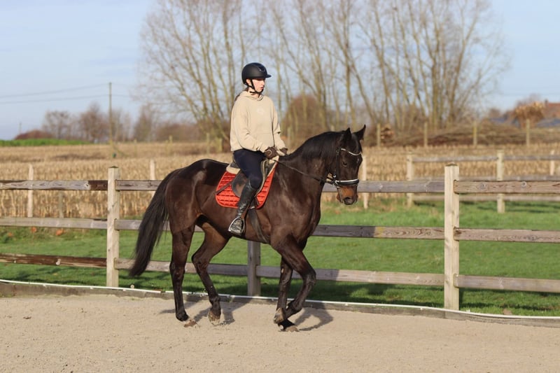 Tiger – hübscher schwarzer Wallach, 4 Jahre alt (ca. 1,66 m) Tiger ist ein schöner schwarzer Wallach im Alter von 4 Jahren mit einer Stockmaß von etwa 1,66 m. Er ist äußerst ruhig und geduldig im Umgang und lässt sich angenehm pflegen und handhaben. Unter dem Sattel ist Tiger fein nachgiebig zu reiten und zeigt sich als ein ruhiger und zuverlässiger Typ, ohne irgendwelche Macken. Er springt gern und leicht und absolviert problemlos einen Parcours bis 80 cm. Auch außerhalb des Dressurplatzes ist Tiger ein angenehmes Pferd: Er ist auf der Straße nicht ängstlich oder schreckhaft. Zudem ist er einfach zu transportieren. 📞 Weitere Infos? 0032 475 68 22 43 🎥 Videos verfügbar – fragen Sie gerne unsere Website an.