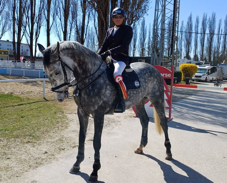 In vendita un cavallo irlandese di sangue caldo di 7 anni, a causa di motivi di salute del proprietario. Attualmente si trova a circa 1,10 m, 1,15 m e 1,25 m nel 2025. Il cavallo viene condotto con una briglia normale ed è adatto a qualsiasi cavaliere con conoscenze di base. Risponde immediatamente alle redini e sa cambiare canter. Inoltre, si comporta senza problemi anche in campagna e in arena. È abituato al trasporto in trailer e al ferratura, e non presenta cattive abitudini.