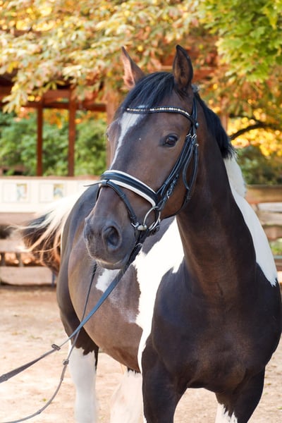 Rookery Ollie ist ein 2018 geborener irischer Freizeitwallach. Der hübsche Schecke besticht nicht nur durch sein besonderes Fellmuster, sondern vor allem durch sein liebes Wesen. Ollie kam im August 2025 zu uns und zeigte sich vom ersten Tag an unkompliziert. Er ist einfach in der Bedienung, sehr angenehm im Umgang und unter dem Sattel bequem und stets bemüht, seinem Reiter alles recht zu machen. Von äußeren Einflüssen lässt er sich so schnell nicht beeindrucken. Er ist ein netter Allrounder, der brav ins Gelände geht, zuverlässig vom Boden mitarbeitet, solide dressurmäßig gearbeitet ist und gerne und ehrlich springt. Ollie wurde bereits brav im WBO-Bereich vorgestellt und fühlt sich sowohl unter Anfängern als auch unter fortgeschrittenen Reitern wohl. Im Schulbetrieb hat sich gezeigt, dass Ollie wechselnde Reiter auf Dauer nicht gut verträgt. Bei negativen Erfahrungen kann er etwas unsicher werden, weshalb wir ihn ausschließlich in erfahrene, konstante Hände abgeben möchten. Wir sind überzeugt, dass er ein zuverlässiger Partner für groß und klein sein kann, der viel Freude macht. Auch für den Einstieg in den Turniersport können wir ihn uns gut vorstellen. Interessenten melden sich bitte direkt per WhatsApp. Ein tolles Pferd wartet auf seinen Menschen, bei dem er langfristig ankommen darf.