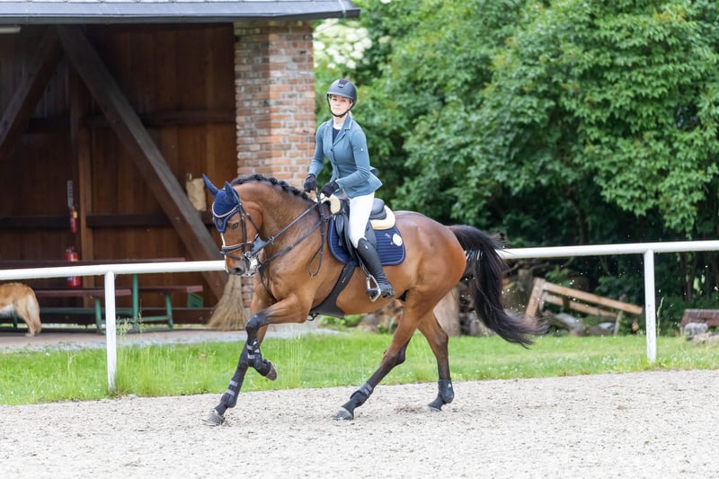 Cyrus ist ein 7jähriger Wallach mit viel Blut, gepaart mit sehr gute Rittigkeit und tollen Charakter. Er wurde aus Irland 4jährig importiert und wird seitdem vielseitig ausgebildet. Seine Reiterin widmet sich vermehrt dem Springsport, somit wird Cyrus hauptsächlich springmäßig gefördert. In den letzten zwei Jahren hat er sich toll entwickelt und ist bis 1.10 platziert. Es handelt sich um ein Pferd mit vorwärtsdrang, allerdings immer positiv und kontrollierbar. Er hat keine Angst von bunten Sprungen, ist nicht guckig und zieht immer zum Sprung hin. In der dressurmässigen Arbeit ist er sehr schön zu reiten, hat stabile Anlehnung und bewegt sich immer im Takt. Seine Reiterin hat leider keine Leidenschaft für die Vielseitigkeit, aber Cyrus hat mehrmals Geländetraining mit einem Fremdreiter absolviert und hat sich dabei vielversprechend gezeigt. Außerdem ist er gesund, hat sehr gute RTG und ist absolut problemlos im Umgang. Mehrere interessanten Pferde in den anderen Anzeigen. Falls Sie etwas Anderes suchen, sprechen Sie uns gerne an. Brauchen Sie sich von unseren Arbeit überzeugen? Kommen Sie an unsere Facebookseite vorbei, wo auch Bewertungen von unseren Auslandskunden sind.