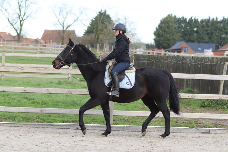 Con Turf Range ottieni esattamente il tipo di cavallo che fa sorridere a tutti. Questo stallone di 9 anni, alto 1,60 m, è un cavallo da passeggio incredibilmente mansueto, che si adatta perfettamente a chiunque. Giovane, anziano, principiante o insicuro — Range si conforma senza problemi al suo cavaliere. Lo utilizziamo anche nelle lezioni per principianti che montano per la prima volta al trotto, e perdona facilmente ogni errore. In compagnia è un tenero, paziente coccolone. I bambini lo portano da e verso il paddock, e lui rimane sempre calmo e amichevole. Range non si spaventa facilmente, non si spaventa durante le uscite in passeggiata e non crea mai problemi. Salta con piacere: Supera facilmente gli 80 cm ed è sempre affidabile e sincero. Durante le campane con i pony, non esita a partecipare a giochi come acchiappare i pesci, bandierine e altre sfide — e abbiamo dei video divertenti che dimostrano quanto sia sicuro e affidabile. Un cavallo da scuola ideale, con un carattere caldo e tranquillo. 📞 Per maggiori informazioni? WhatsApp: +32 475 68 22 43 🎥 I video sono disponibili sul nostro sito – chiedici pure!