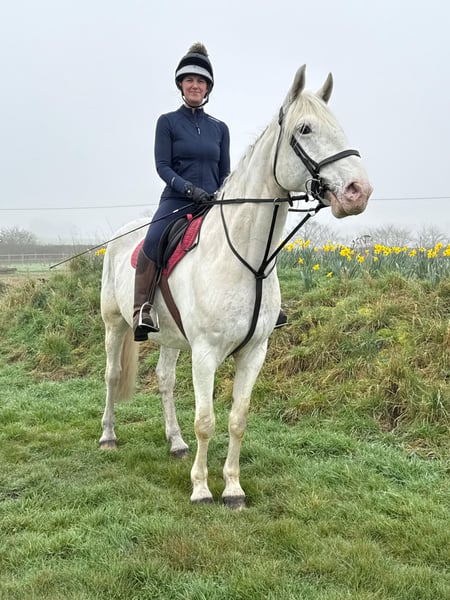Finn is a 9 year old 16.2 idxtb he is a great all rounder who works well in the school in all 3 paces , he hacks alone and in company . finn has also vaulted been to the beach and woods . finn is currently on a busy riding school yard surrounded by RDA and children . good to clip shoe etc finn has had steroid injections in his spinal ligaments (can be discussed further) he is one of the friendliest and kind horses ive owned in the 80 years of having horses . we feel he is more suited to the more established rider which we dont have so unfortunately this is his reason for sale . we would like to find him a suitable one to one home where his routine will be varied as is this where he thrives .
