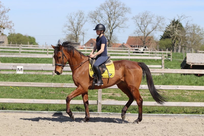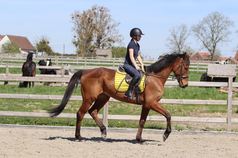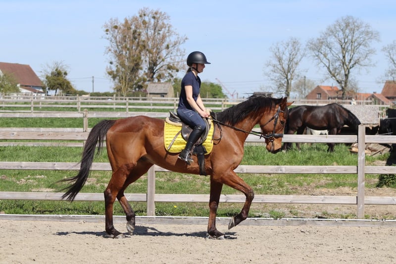 Cheval de loisir agréable Sea est un cheval de loisir fiable et agréable. Il se déplace facilement en dressage, en étant souple et réactif. Il est doux et simple dans les trois allures. Il aime également partir en balade à l'extérieur, où il reste calme et sûr de lui. Sea est facile à sauter et franchit actuellement un parcours d'environ 80 cm. • 9 ans • Hongre • Environ 1,70 m Gentil en comportement et doté de belles allures fluides. Pour plus d'informations : 0032475682243 Pour des vidéos : demandez notre site internet.