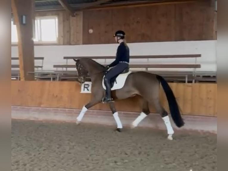 5-year-old Hanoverian mare from the breeder "Von und Zu" – Don Bosco x Prince Thatch xx Noble Hanoverian mare, linebred to the grand sire "Prince Thatch xx," candidate for premium status, with excellent dressage aptitude, combined with good rideability and a friendly, human-oriented nature. Notably, she has an active hindquarters with an outstanding walk. Her training was approached in a calm, trust-based manner by an amateur rider and show jumper, providing a solid foundation for her further development. A raw diamond with great potential for sport or leisure riding. Half-siblings have already achieved success up to multiple Grand Prix victories. Very good X-ray results. Tel. 0171 9901553