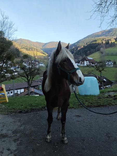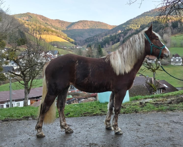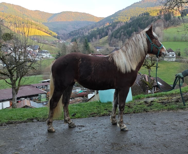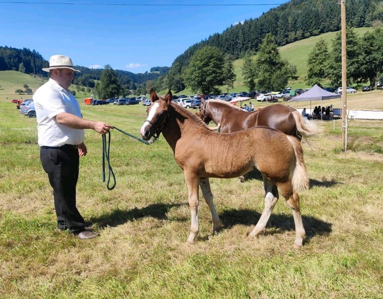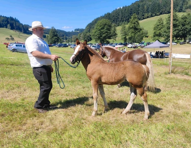 1.5-year-old Black Forest (Schwarzwälder) chestnut mare Born May 2024 Sire: JHP LH HB Rodewald Dam’s sire: JHP LH Drachenfels Up for sale is a stylish, expressive young mare with plenty of charm and presence. She is consistently well-behaved and easy to handle, and is both farrier- and loading-friendly, impressing with her friendly nature. At the foal inspection in Kohlenbach 2024, she was awarded a gold medal – a testament to her quality and excellent conformation.