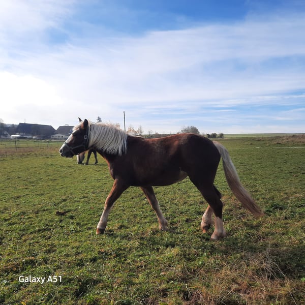 For sale: young Black Forest chestnut mare – perfect for leisure riding! Born in 2024, this charming mare offers great potential and brings joy to everyday riding. She is ideally suited for those seeking a reliable and affectionate horse. She is very curious and eager to learn. Please feel free to contact me for more information or to arrange a viewing.