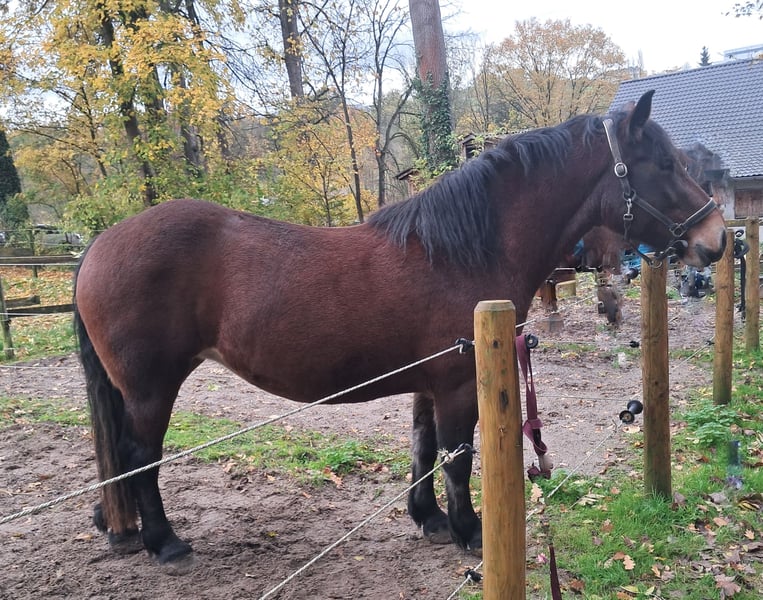 Aurora Viola ist eine 3 1/2-jährige braune Schwarzwälder Kaltblutstute. Sie stammt ab vom Leistungshengst Vinzent (V: E.H. LH Vento; MV: LH Wildfuchs) aus der braunen Staatsprämien- und Leistungsstute Alice (V: LH Leonhard; MV: HPH LH Donnergroll). Seit November 2025 ist Aurora aufgestallt und hat Ihre Ausbildung zum Reitpferd begonnen. Im Umgang noch jugendlich, zeigt sie sich unterm Sattel stabil und sehr unerschrocken. Sie hat einen guten raumgreifenden Schritt und einen sehr bequemen und lockeren Trab. Sie misst zurzeit ca. 1.55m und steht noch in der Entwicklung. Aurora ist PSSM N/N. Sie hat die Farballele AaEe und trägt somit das begehrte Rappgen in sich. Für die Zuchtinteressierten von Bedeutung: Aurora Viola stammt aus einer stark gefährdeten Stutenfamilie ab (Stutenfamilie der Arnika). Für Aurora suche ich ein neues Zuhause mit Familien Anschluss. Sie wird sicherlich ein sehr arbeitswilliges, motiviertes und freudiges Arbeitspferd werden. Aufgrund ihres jungen Alters sollte Erfahrung mit Jungpferden und der Pferdeausbildung vorhanden sein. Keine Händler und keine Reitschulbetriebe! Für weitere Infos/Bilder/Videos nehmt gerne direkt Kontakt mit mir auf.