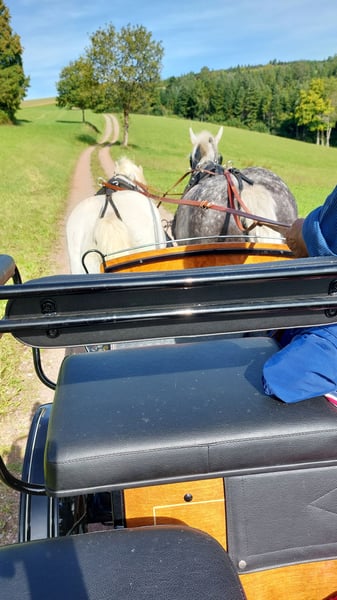 Fortuna stammt aus einem Zuchtversuch Schwarzwälder Schimmel x schweres Warmblut. Sie wurde bereits geritten und gefahren, befindet sich aber noch in der Ausbildung. Sie ist brav von der Weide zu holen, schmiedefromm, lässt sich gut verladen und vor allem ist sie sehr lernwillig. Sie kennt Umzüge unterm Reiter und vor der Kutsche und hat an allem gelassen teilgenommen. Wir suchen für sie eine/n aktiven gute/nReiterIn und einen Platz mit Weidegang.