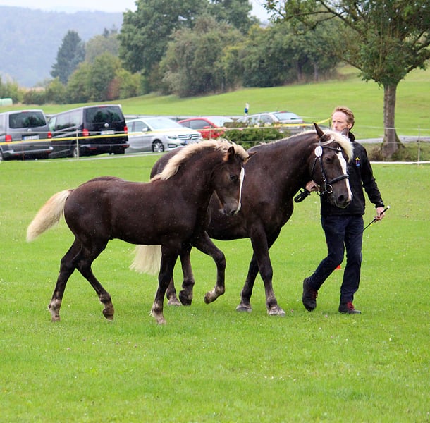 We are looking for a new home for our beautiful Schwarzwälder cold-blood colt. Vridolin, out of Feine Marie by Vento, was born in May and is growing up with us in a herd environment. He is curious and open-minded, which made his first experience with trailer loading trouble-free. He is familiar with large agricultural machinery and the basics of foal handling. At the foal show, he was rated as a Gold Foal with 35 points and was the overall champion foal of the show. He can be handed over starting around December. Appointments for viewing can be arranged.