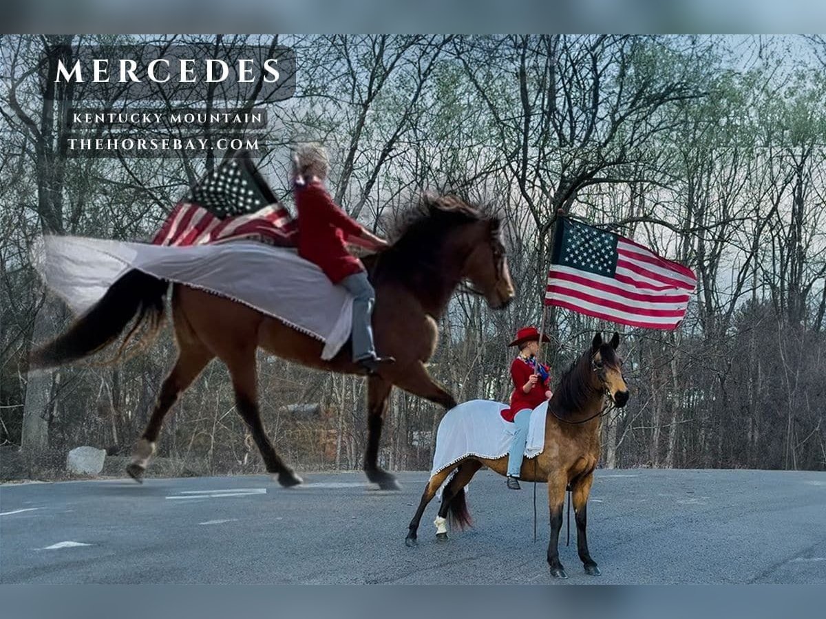 Mercedes is a beautiful Buckskin mare standing 14.3 hands tall. When I say beautiful, it’s not just her looks; it’s her personality and mindset, too. Of all the horses l have had an opportunity to ride and be around Mercedes is by far my favorite! Everyone loves her! If you’re looking for an uncomplicated partner to enjoy and have fun with, this is your girl! Mercedes has the perfect, smooth gait everyone dreams of! It doesn’t matter if you ride her with or without tack; she has the same natural, smooth gait and keeps a quiet mind. Mercedes has been extensively trail-riden and enjoys it. She takes you wherever you ask her with ease and is spook-free. If you’re not an experienced rider, that’s no problem; she knows what to do and makes it fun! There isn’t much this girl hasn’t experienced. If you want to have fun and go show, she is no stranger to the show ring; she has won tons of shows for my family! If you like to ride alone, Mercedes is great with or without company. Mercedes ties well in the cross ties or on the picket line. Loading for her is easy, and she loves backing off the trailer. Mercedes has an in-your-business, give-me-attention personality that makes her fun to be around. The farrier loves visiting her and says l wish every horse acted like this it would make my life easy. Watch Mercedes videos to learn more and schedule a time to come see her!!! This is a mare you will appreciate and enjoy!