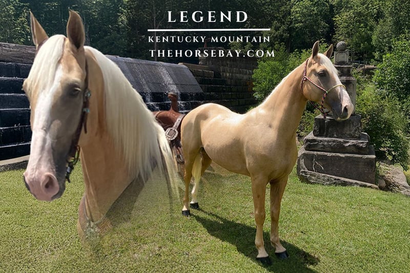 Legend, Wow!! Look at this beautiful palomino gelding. If you’re looking for a gentle horse with the smoothest gait around, Legend is your guy. Legend is an all-around trooper as he takes whatever we throw his way. Legend is trained to stretch out on command, whether you’re showing a model or want him to stretch out to mount. Legend has been to several shows, including our big state fair, where they hold concerts at the same time as the evening shows. Legend does well with all the commotion and will win you ribbons every time! We live deep in the mountains, and Legend has ridden miles and miles of trails, including steep rocky terrain, alongside deer, hikers, and turkeys. He is a champ with it all! We have also ridden on the roads with no fear of cars. Legend stands perfect for the farrier, ties great in crossties or to the trailer, loads very easily, is no problem to tack, bathes easily, and loves attention. Legend has been ridden by several different levels of riders and done well with them all. Come try Legend out, you will have a nice ride and a fun visit with him!