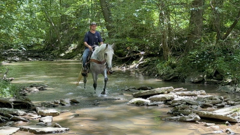 "VERFÜGBAR BEI DER ONLINE-PFERDEAUKTION UNTER www DOT MagicHorseAuction DOT com DIE AUKTION IST JETZT GEÖFFNET BIS DIENSTAG | 22. JULI - SOFORTKAUF MÖGLICH! *Der endgültige Preis wird auf der Auktionsseite festgelegt* KONTAKTINFORMATIONEN DES EINLIEFERERS: Zach Brandenburg 513-508-3684 STANDORT: Grassy Creek, KY Stone ist ein hübscher grauer Kentucky Mountain Wallach, 7 Jahre alt und 15,2 Hände groß mit einem kräftigen Bau. Dies ist ein attraktiver Wallach, der für die Dauerhaftigkeit gebaut ist und seinem Reiter bei jedem Ritt eine angenehme, sanfte Fahrt bietet! Stone ist sicherfüßig, selbstbewusst und verkehrssicher. Er hat in mehreren Bundesstaaten beim Trailreiten teilgenommen, einschließlich einwöchiger Ausritte. Stone reitet in Gruppen oder alleine, er hat großartige Manieren am Boden und ist sehr einfach im Umgang. Stone ist ein auffälliges, vorwärtsbewegendes Pferd, das seine Aufgabe kennt, aber respektvoll und reaktionsschnell ist und gerne geht, wenn man ihn darum bittet."