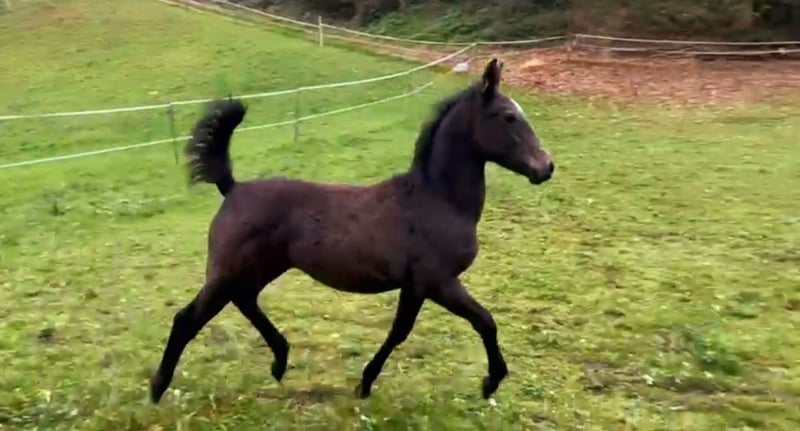 Pa' Dora Diamant af Eichlgütl. Eingetragen beim ZfdP. Vater: Knabstrupper, ZfdP Hengstbuch 2, Benz' Indiana Jones mit alten dänischen Blutlinien, die bis ins 18. Jahrhundert zurück reichen. LP/Lp, PATN1/Patn1. Mutter: Knabstrupper, Pippi, beim ZfdP eingetragen. LP/Lp. Die Farbentwicklung Doras ist noch nicht absehbar. Dora Diamant, benannt nach der letzten Freundin Franz Kafkas, geboren im Kafka-Jahr (17.06.2024) ist ein Stutfohlen mit hoher Menschenbezogenheit und ausgesprochen guten Nerven. Sie geht bereits selbstständig in den Pferdehänger, kennt Baden im Fluss und ist auch sonst völlig unerschrocken. Knabstrupper-typisch hat sie einen sehr klaren Kopf und auch den typischen Eigenwillen. Sie wächst seit ihrer Geburt in einer Herde mit ihrer Mutter (Leitstute) und mehreren anderen jungen Pferden in Offenstallhaltung auf. Aufgrund ihrer Gelassenheit wäre sicherlich auch gut ein Einsatz als Therapiepferd denkbar. Die Eltern haben Beide, insbesondere der Vater eine sehr gute Dressurveranlagung. Der Vater befindet sich im Besitz der Oliveira Stables. Wir bieten darüber hinaus einen sehr günstigen Aufzuchtsplatz (140 Euro pro Monat) an. Bei ehrlichem Interesse bitte gerne Zuschriften mit einer kurzen Vorstellung, wie wir uns die Zukunft von Dora bei Ihnen vorstellen können oder Sie rufen einfach an. Auf den letzten Fotos ist der Vater zu sehen. Die anderen Fotos zeigen Dora von ihrer Geburt bis zum jetzigen Zeitpunkt.