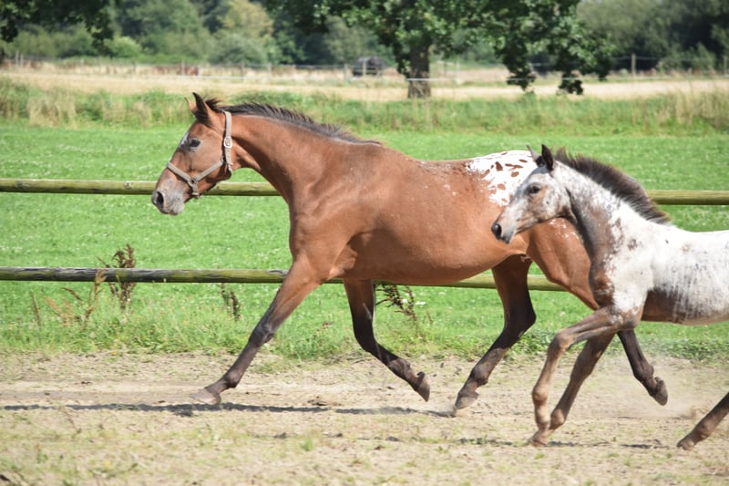 Wir präsentieren eine wunderschöne Knabstrupper-Stute, geboren im Jahr 2019, mit einem auffälligen leopard-piebald Fell, das garantiert Blicke auf sich zieht. Mit einer beeindruckenden Größe von 165 cm vereint sie Eleganz und Kraft und ist eine außergewöhnliche Stute zur Zucht von farbigen Sportpferden. Ihr Fohlen aus diesem Jahr wurde zur besten Stute bei der Knabstrupper-Zuchtbewertung in diesem Sommer gekürt. Sie ist mit Caliberto KNN 312 gedeckt und wird 2026 ein wirklich schönes Fohlen haben. (Sie hat momentan ein Fohlen bei sich, daher wird sie vor Januar 2026 bereit sein, hier wegzugehen.) Diese Stute ist nicht nur visuell beeindruckend, sondern stammt auch aus einem renommierten Zuchtbackground, der Qualität und Potenzial für verschiedene Disziplinen gewährleistet. Sie hat ein sanftes Temperament und ist in vielen Situationen sehr gelassen. Ihre einzigartigen Abzeichen und ihre anmutige Präsenz machen sie zu einem herausragenden Pferd in jeder Umgebung. Verpassen Sie nicht die Gelegenheit, dieses außergewöhnliche Pferd zu besitzen! Für weitere Informationen oder um einen Besichtigungstermin zu vereinbaren, kontaktieren Sie uns bitte.