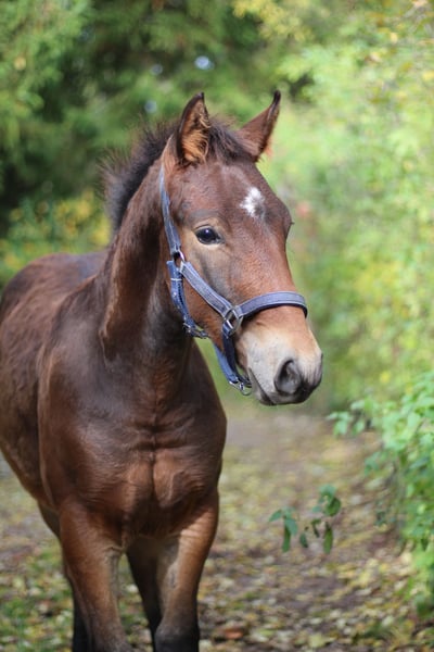 Luke vom Storchenmoos Date of Birth: 01.06.2025 Father: Löwenherz Mother: Thalia of Yore Mother/Father: Baldur aus der schützenden Hand Brown (does not change color) Estimated final height approx. 1.57m Luke is a very sweet, beautifully built little man. He already knows how to move and gets along very well in the herd. Sometimes, however, he still becomes the little mama's boy, using her, the boss, as a hiding place when he crosses a boundary with another herd member. He will be regularly dewormed, have seen the farrier, and will have received at least a tetanus vaccination by the time he leaves around December 2025. Additionally, he should have learned his foal ABC, including halter training, tying up, and being familiar with the trailer. Last two photos, mother and father.