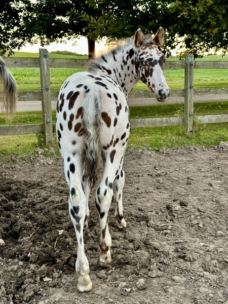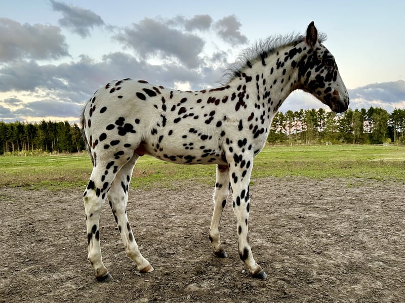 Das perfekteste Knabstrupper-Fohlen, das wir je gezüchtet haben. Original 16/16 reinrassiger Knabstrupper. Charmant wie kein anderer. Wunderschön und sehr besonders, mit Flecken in Dunkelbraun, Schwarz und Palomino. Sehr gut gebaut mit sowohl Eleganz als auch einer extrem guten Oberlinie.