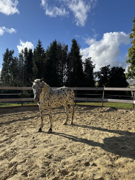 Nach langer, intensiver Überlegung und mit schwerem Herzen habe ich mich dazu entschlossen, meinen geliebten Knabstrupper Wallach Rico (Stockmaß 158 cm), geboren 2005 (20 Jahre), in neue, liebevolle Hände zu geben. Diese Entscheidung fällt mir alles andere als leicht, denn er ist für mich weit mehr als nur ein Pferd – er ist ein treuer Gefährte, der mich über viele Jahre begleitet hat und dem ich sehr viel zu verdanken habe. Leider haben sich meine Lebensumstände so verändert, dass ich ihm nicht mehr die Zeit, Aufmerksamkeit und Bewegung schenken kann, die er verdient und braucht. Er ist ein kluges, arbeitswilliges Pferd, das gefordert werden möchte und mit dem man, wenn man ihm Zeit und Geduld schenkt, einen ehrlichen und verlässlichen Freund fürs Leben gewinnt. Er ist sehr robust, war bisher nie krank und hat keine bekannten Krankheiten. Insgesamt ist er zügig unterwegs, deshalb ist er kein Anfängerpferd und nicht für Kinder geeignet , aber er bleibt immer klar im Kopf und verlässlich. Er ist Western ausgebildet, beherrscht die Freiarbeit, geht sicher im Gelände – sowohl alleine als auch in der Gruppe – und geht auch ins Wasser und beherrscht das Schwimmen und kennt es auf mehrtägigen Wanderritten unterwegs zu sein. Momentan lebt er in einer Stutenherde im Offenstall, weshalb ich die Offenstallhaltung auch für sein neues zu Hause prinzipiell bevorzuge. (absolute Boxenhaltung schließe ich für ihn aus) Im Herdenverband ist er als ranghoch anzusehen. Ich wünsche mir für ihn von Herzen einen Menschen, der ihn liebt, fördert und ihm ein artgerechtes Zuhause schenkt, in dem er weiterhin Freude am Leben haben darf. Er ist kein Pferd für absolute Anfänger, aber für jemanden mit Herz, Pferdeverstand und Zeit ist er ein wahrer Freund fürs Leben. Mir ist es ein großes Anliegen, dass er in beste Hände kommt, deshalb steht bei mir der Platz vor dem Preis. Ich hoffe sehr, dass sich jemand findet, der ihm das geben kann, was ich ihm momentan nicht bieten kann, und bei dem er noch viele glückliche Jahre verbringen darf. „Hängerfahren“ gehört nicht zu seinen Lieblingsbeschäftigungen, geht jedoch mit etwas Training anstandslos drauf - getreu dem Motto wenn’s unbedingt sein muss. :) Den Hufschmied kennt er auch und lässt sich von ihm gern verwöhnen. Bei ernsthaftem Interesse oder weiteren Fragen freue ich mich sehr über eine Nachricht. Bitte nur melden bei ernsthaftem Interesse und wenn du sicher bist ihm ein tolles neues zu Hause bieten zu können. Verkauft wird er auch definitiv nicht an Händler!