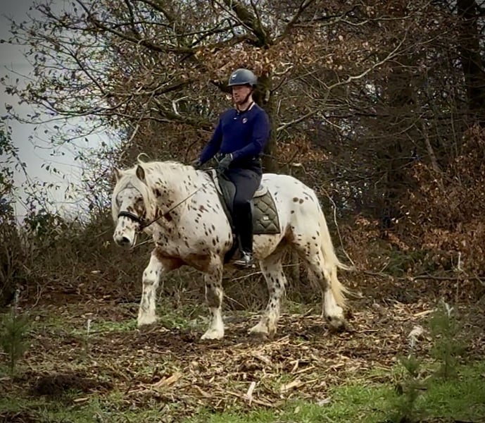 Nom : Leo Race : Croisement Knabstrupper Sexe : hongre Date de naissance : 08/04/2021 Âge : 4 ans Taille au garrot : 1,53 m Couleur : tache tigrée Origine : non connue Caractère : proche de l’humain, fiable, intelligent, courageux, patient, calme et nerveux Éducation / Aptitudes : monté, loisir, dressage, randonnée, thérapie Expérience en terrain : fiable, intrépide, aussi bien seul qu’en groupe Santé : vermifugé, vacciné, pieds nus, sans eczéma, dents contrôlées, traité ostéopathiquement Hébergement : box, paddock Caractéristiques particulières : forge et déchargement faciles, compatible avec le troupeau Les qualités mentionnées reposent sur notre appréciation personnelle et ne constituent pas une garantie. Prix : 8 900 € (prix TTC) Vous avons-nous éveillé votre intérêt ? Pour vous donner une meilleure impression de Leo, nous serions heureux de vous envoyer sa vidéo de monte. Bien entendu, nous restons à votre disposition pour une description détaillée du cheval, un conseil personnalisé et pour répondre à toutes vos questions, également par téléphone. N’hésitez pas à nous contacter à tout moment par WhatsApp ou par téléphone au : +49 15119487595 Nos horaires téléphoniques : tous les jours de 7h00 à 13h30 et à partir de 20h00. Nous serions ravis d’avoir de vos nouvelles ! Une visite vétérinaire ou une radiographie préalable à l’achat peut être effectuée par le vétérinaire de votre choix. Leo peut bien entendu être livré en toute sécurité et confortablement dans sa nouvelle maison. Nous nous occupons de toutes les préparations nécessaires et du transport pour que votre nouveau compagnon arrive sans stress, bien soigné, assuré et en bonne santé. Actuellement, nous proposons une sélection soigneusement choisie de chevaux à vendre. Chez nous, vous trouverez sûrement le cheval de vos rêves. N’hésitez pas à visiter notre site internet : www.marvinsroyalhorses.de. Chers clients, nous serons heureux de vous présenter nos chevaux et de vous permettre de les brosser, de les seller, de les longe, de faire du travail à pied ou des essais en carrière, sur le terrain ou en forêt, afin de mieux connaître votre futur partenaire. Cela coûte 40 € par cheval, 30 € pour chaque cheval supplémentaire, et sera remboursé lors de l’achat. Notre adresse : Ferdinand Grube 50 53577 Neustadt Wied Google Maps : marvinsroyalhorses