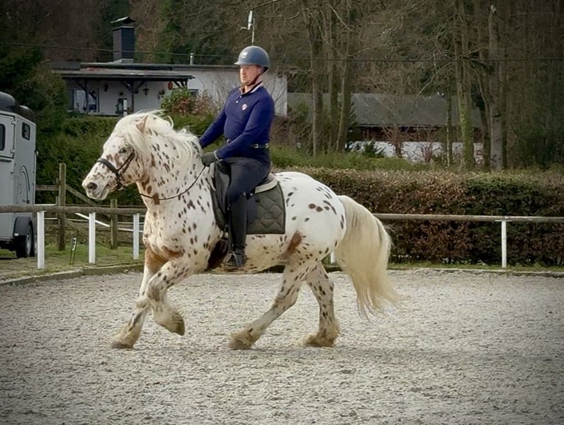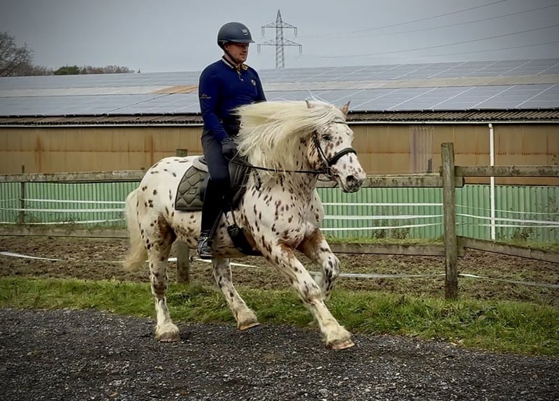 Name: Leo Rasse: Knabstrupper Mix Geschlecht: Wallach Geburtsdatum: 08.04.2021 Alter: 4 Stockmaß: 1.53m Farbe: Tigerschecke Abstammung: nicht bekannt Charakter: menschenbezogen, verlässlich, intelligent, mutig, geduldig, nervenstark Ausbildung/Eignung: geritten, Freizeit, Dressur, Wanderreiten, Therapie Geländeerfahrung: zuverlässig, unerschrocken, alleine und in der Gruppe Gesundheit: entwurmt, geimpft, Barhufer, ekzemfrei, Zähne kontrolliert, ostheopatisch behandelt Haltung: Box, Offenstall Besonderheiten: schmiede und verladefromm, herdenverträglich Die genannten Eigenschaften beruhen auf unserer persönlichen Einschätzung und stellen keine zugesicherten Merkmale dar. Preis: 8900€ (Bruttopreis) Haben wir ihr Interesse geweckt? Um Ihnen einen besseren Eindruck von Leo zu geben, senden wir Ihnen sehr gerne sein Reitvideo zu. Selbstverständlich stehen wir Ihnen für eine ausführliche Beschreibung des Pferdes, persönliche Beratung und zur Beantwortung aller Ihrer Fragen auch telefonisch zur Verfügung. Bitte schreiben Sie uns hierfür jederzeit eine WhatsApp Nachricht, oder rufen unter folgender Telefonnummer an: +49 15119487595 Unsere Telefonzeiten sind täglich von 7:00 - 13:30 sowie ab 20:00Uhr. Wir freuen uns über Ihre Kontaktaufnahme! Eine klinische oder Röntgenologische Ankaufsuntersuchung kann gerne vom Tierarzt Ihrer Wahl durchgeführt werden. Natürlich kann Leo sicher und komfortabel in sein neues Zuhause geliefert werden. Wir kümmern uns um alle notwendigen Vorbereitungen und den Transport, damit Ihr neues Pferd stressfrei, gut betreut, versichert und wohlbehalten im neuen Zuhause ankommt. Zurzeit präsentieren wir eine sorgfältig ausgewählte Vielfalt an Verkaufspferden. Bei uns finden Sie garantiert Ihr Traumpferd. Besuchen Sie uns auch gerne auf unserer Homepage unter: www.marvinsroyalhorses.de. Sehr geehrte Kunden, gerne stellen wir Ihnen unsere Pferde vor und führen, putzen, satteln, longieren, Bodenarbeit sowie Probereiten in der Reithalle, auf dem Platz oder im Gelände ist Ihnen möglich, um Ihr neues Familienmitglied näher kennenzulernen. Dieses kostet für ein Pferd 40€, für jedes weitere 30€ und wird beim Kauf wieder erstattet. Unsere Adresse lautet: Grube Ferdinand 50 53577 Neustadt Wied Google Maps: marvinsroyalhorses