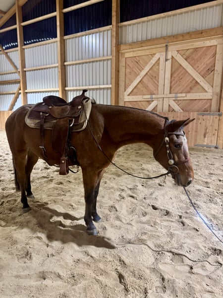 Zum Verkauf steht unser hübscher Knabstrupper Wallach Mr. Why Not „Marzipan“ ist ein auffälliger und aufmerksamer Kerl mit dem typischen, charmanten Wesen dieser Rasse. Er überzeugt nicht nur durch sein angenehmes Exterieur, sondern auch durch seine besondere Fellzeichnung, die sie zu einem echten Blickfang macht. Alter: 3 Jahre Rasse: Knabstrupper Geschlecht: Wallach Farbe: Brauner mit Schabrackenzeichnung Stockmaß: aktuell ca. 158cm (noch im Wachstum) ✅ verladefromm ✅ Regelmäßig entwurmt ✅ Robust gehalten, kennt Offenstall und Box ✅ Sozial super verträglich, kann entspannt mit Stuten Hengsten und Wallachen gehalten werden „Marzipan“ ist angeritten und zeigt sich stets aufmerksam und lernwillig. Er ist brav im Umgang, kennt das Longieren mit Sattel und Trense und die ersten Schritte unterm Reiter sind auch gemacht. Bedeutet also, er ist jetzt die ersten Male Schritt, Trab & Gallop geritten. Im täglichen Handling zeigt er sich freundlich und menschenbezogen hatte leider einen schlechten Start bei einem Pferdehändler und braucht daher etwas Ruhe und Vertrauen aber hat den Glauben ans Gute im Menschen nicht verloren. Dank seines korrekten Körperbaus und seiner eleganten Bewegungen bringt er die besten Voraussetzungen für eine vielseitige Nutzung mit – ob Freizeit, Dressur, Springen, Western oder einfach entspannt im Gelände. Er besticht durch seine federweichen Gänge und obwohl er erst kurz unterm Sattel ist kann man bereits spüren, dass er mal traumhaft zu reiten sein wird. Aktuell erhält er bei uns eine Western Grundausbildung. Ein ideales Nachwuchspferd für Menschen, die Freude daran haben, ein junges Pferd selbst auszubilden und eine enge Bindung aufzubauen. Auf Grund einer unbehandelten Hautverletzung beim Vorbesitzer musste in einer Klinik ein Schönheitsfehler entfernt werden, auch da überzeugte er mit vorbildlichen Verhalten und es konnte erfolgreich entfernt werden. Platz vor Preis da uns ein gutes Zuhause sehr am Herzen liegt