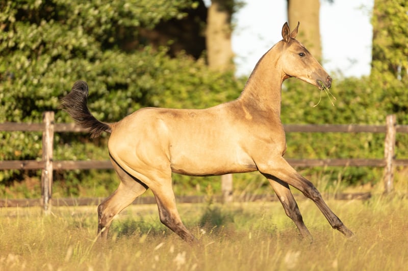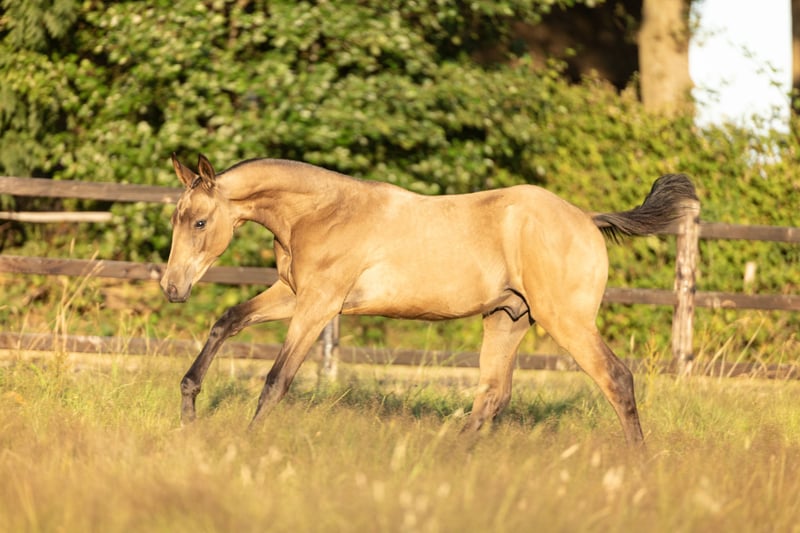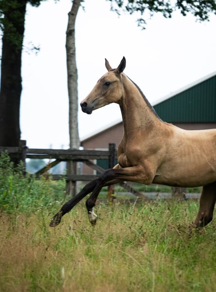 Big size buckskin beauty One of the last(!) offspring of Gundogar (1189 Dialog x 2623 Gaza) 💎 Gunyar RN 💎 Very good mind Loves attention He wil be BIG! Gundogar (1189 Dialog x 2623 Gaza), son of Dialog and half brother to Saivan who needs no explaination. Very good movements. Strong hindleg and back. Good temperament. Amanta (Muzgani x Ahcha 9) is a large mare (1.65m with stick). Dam has a very good walk and can collect very easy. Serious mare with the best work attitude you can find in a horse. Dam has offsping proven in race industry and show. Last 2 pictures of dam and his look alike sister. I would love to see him go to an active home. Located in the Netherlands. Export possible. Please serious inquiries only.