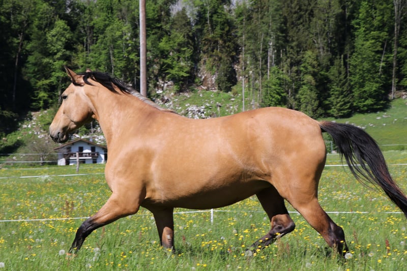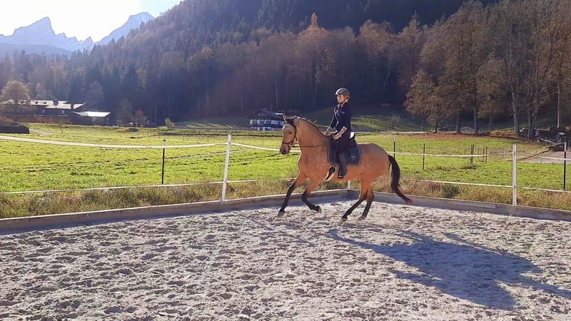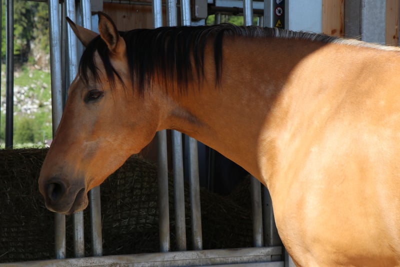 For sale is my charming purebred PRE mare from 2015. With her golden buckskin coat and a height of 165 cm, she is not only a real eye-catcher but also a loyal companion for leisure activities. My mare is absolutely friendly, likes other animals (is familiar with cats, dogs, chickens, goats, and cows), and gets along well with all horses - whether ponies or large horses, mares or geldings. She integrates effortlessly into the herd and will only be sold for open stall housing due to her social and lively nature. As she is typically Spanish and easy to gain weight, she requires regulated hay feeding and limited turnout. She is not a horse for 24/7 pasture and unlimited hay access! My mare is a very smart horse that learns quickly and especially enjoys and has potential in classical groundwork with the cavesson. The Spanish walk is her favorite lesson. She is ridden bitless and prefers to go out in the field. On field and forest paths, she is a dream - even alone, as she does not stick to other horses at all. She is always well-regulated in all gaits and does not rush off when heading back. However, she is unfortunately not road-safe and is particularly afraid of trucks, tractors, etc. Since we do not have anyone at the stable who goes out riding, I cannot practice this well - but with a confident companion horse, it would probably be manageable. My mare is well-trained but, as is typical for Spanish horses, very sensitive and delicate - therefore, she is not a horse for beginners or impatient/coarse individuals. Additionally, she is not a weight carrier. Unfortunately, my mare has a few health issues (which do not constitute the reason for sale!), so she will be sold as conditionally rideable. More details can be discussed personally. This is not a forced sale, and only with a right of first refusal/placement check. I would like a place for my mare as a family member, where she is loved and cared for as she is by me! The focus should not be on riding but rather on the relationship with the horse and engaging in gymnastic, health-promoting work. I look forward to friendly, seriously interested inquiries.