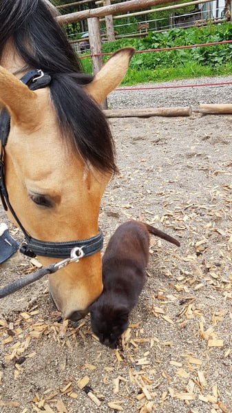 Zum Verkauf steht meine bezaubernde reinrassige PRE Stute aus dem Jahr 2015. Mit ihrem goldenen Fell und einem Stockmaß von 165 cm ist sie nicht nur ein echter Blickfang, sondern auch eine treue Begleiterin für die Freizeit. Meine Stute ist absolut freundlich, mag andere Tiere (kennt Katzen, Hunde, Hühner, Ziegen und Kühe) und ist verträglich mit allen Pferden - egal ob Ponys/Großpferde, Stuten/Wallache. Sie fügt sich absolut unkompliziert in die Herde ein und wird aufgrund ihres sozialen und aufgeweckten Wesens auch nur in Offenstallhaltung abgegeben. Da sie spaniertypisch leichtfuttrig ist, braucht sie eine regulierte Heufütterung und eingeschränkten Weidegang. Meine Stute ist ein sehr schlaues Pferd, das rasch lernt und vor allem in der klassischen Handarbeit am Kappzaum Freude und Potenzial hat. Sie beherrscht die Seitengänge und der spanische Schritt ist ihre Lieblingslektion. Sie reagiert ganz fein auf die Hilfen, denkt mit und möchte alles richtig machen. Geritten wird meine Stute gebisslos und am liebsten im Gelände. Hierbei ist sie ein Traum - auch alleine, da sie überhaupt nicht an anderen Pferden klebt. Sie ist in allen Gangarten stets gut zu regulieren und hat ein angenehmes Go mit sehr bequemen Gängen. Allerdings ist sie (noch) nicht ganz straßensicher. Autos sind ok, aber bei LKWs, Traktoren o.ä. hat sie Angst. Da braucht es entweder genug Platz zum Ausweichen oder ein sicheres Begleitpferd, hinter dem sie sich verstecken kann. Meine Stute ist gut erzogen, ist aber auch sehr feinfühlig und sensibel - deshalb ist sie kein Pferd für Anfänger oder ungeduldige/grobe Menschen. Ausserdem ist sie kein Gewichtsträger. Unarten wie Bocken oder Steigen gibt es bei ihr nicht. Ich reite sie gerne ohne Sattel, wobei sie wirklich superbrav ist und immer gut auf ihren Menschen aufpasst. Meine Stute hat ein paar gesundheitliche Themen, weshalb sie -trotz ihres Potenzials und schönen Gänge- ausschließlich als Freizeitpferd abgegeben wird. Mehr dazu gerne persönlich. Kein Notverkauf und nur mit Vorkaufsrecht/Platzkontrolle. Hochwertiges Zubehör kann miterworben werden. Ich würde mir einen Platz als Familienmitglied für meine Stute wünschen, wo sie so geliebt und umsorgt wird, wie von mir! Im Vordergrund sollte nicht das Reiten, sondern die Beziehung zum Pferd und ein gymnastizierendes, gesundheitsförderndes Arbeiten stehen. Ich freue mich auf nette, ernsthaft interessierte Anfragen.