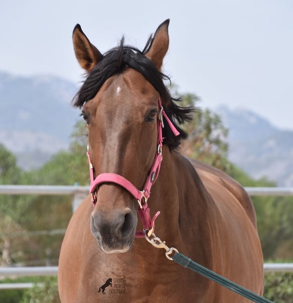 This PRE mare (Andalusian with ANCCE breed certificate), born in 2015, is a kind-hearted soul. As her owner has changed careers and is very busy, she has not been ridden for a year now. She is too good for just lunging and the owner has realized that it would be better for the mare to find a home where she can be kept busy again. She stands 24 hours a day in a paddock with an open stable, goes barehoof and will do almost anything for a carrot and a stroke ;) She is very, very lovingly looked after by the whole family, the only thing she lacks a bit is work to turn her round tummy into muscles. Before the break she was ridden on a basic level, but can also be retrained for other disciplines, such as western. Riding can also be organized on site, both classical English and Western style. Her pedigree is impressive, as she is sired by BOHORQUEZ and also has the exceptional stallion DECO by Yeguada Militar on her sire's side. On her dam's side, she can be traced back to Guardiola and Yeguada Militar. She was bred by a very friendly, horse-friendly breeder in Mallorca, but even there nature sometimes plays its whims. You can see a small indentation on the left side of her neck, which comes from her position in the mare and she has pressed into the neck with her carpal joint. This is NOT an injury, just an optical peculiarity, which will of course be taken into consideration. Place before price! She is currently in Mallorca! Videos and pedigree available on request. I would be happy to organize an AKU, riding, transport or even your trip if you come to see her in person. Details can be found on my website or in conversation.