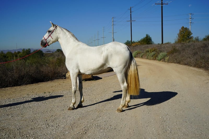 Elegant Andalusian Mare for Sale Andalusian mare, born in 2013. Standing at 16 hands tall, she boasts a striking white coat that captures attention wherever she goes. With her exceptional breeding background, she embodies the classic Andalusian elegance and athleticism. Perfect for a horse enthusiast seeking to improve their breeding program or wants to train their forever companion for the riding discipline of their choice. Queen Diana has a calm temperament. Whether you're interested in dressage, classical riding, or simply enjoying her presence, this mare is a wonderful addition to any equestrian enthusiast's stable. Don't miss the opportunity to own this remarkable Andalusian mare with a distinguished pedigree. For more information visit https://www.whitestallionhay.com/horses/queendiana and to arrange a viewing, please contact us.