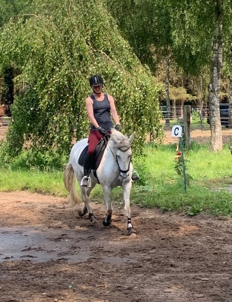 Zum Verkauf steht meine 12 Jährige (10.10.2013) Schimmel Stute ( Stockmaß ca 1,53) Ich habe sie im Sommer 2020 in Deutschland vom Händler gekauft wo sie ca 6 Wochen stand. Sie lebte davor in Spanien. War grade frisch an den Reiter gewöhnt als ich sie gekauft habe. Sie ist im Umgang eine unglaublich liebe Stute, aber auch sehr sensibel. Laute, gestresste Menschen sind absolut nichts für sie. Ideal wäre eine Einzelne Person auf die sie sich absolut verlassen kann. Beim Thema reiten und Haltung ist sie leider nicht ganz so einfach. In den letzten Jahren war es leider sehr schwer sie mit anderen Pferden zu vergesellschaften. Es ist mittlerweile deutlich besser geworden, aber immer noch ein Thema. Mittlerweile denke ich brauch sie viel Platz, und eher eine kleine feste Herde von 2-3 Pferden ohne ständigem Pferdewechsel. Aber auch da kann es sein das es dauerhaft nicht funktioniert. Beim reiten hat sie viel Go. Ist immer motiviert und auch hier eher sensibel. Beim Thema reiten braucht sie einen Menschen der sicher ist in dem was er tut. Man sollte einen ausbalancierten Sitz haben, und bereit sein gewisse Dinge anders zu machen als man es vielleicht mal gelernt hat. Nun kommen wir zu dem Grund warum ich sie verkaufen möchte. Sie ist ein Pferd das besonders beim reiten Routine braucht. Leider ist mir genau das aus zeitlichen Gründen nicht möglich. Sie ist bisher die meiste Zeit von mir ins Gelände geritten worden. Sie ist in allen Grundgangarten zu reiten. Viel mehr ist bisher nicht gemacht worden. Zurzeit geht sie 1-2 mal die Woche in Beritt. War 2021 für 6 Wochen in Vollberitt. Hat bisher vorne immer Eisen gehabt, hinten im Sommer nach Bedarf. Geimpft ( Tetanus, Influenza, West-Nil Virus) Absolut brav beim Schmied. Verladen klappte bisher immer , aber es fehlt ihr auch da deutlich die Routine. Sehr leichtfuttrig, wählerisch beim Mineralfutter, ansonsten verfressen. Braucht eine Fliegendecke im Sommer, weil sie schnell gestresst ist wenn die Fliegen sie belästigen. Kein Ekzemer. War im Winter bisher immer Eingedeckt. Probereiten nach vorherigem Kennenlernen möglich. 6900€ VHB, Platz vor Preis!