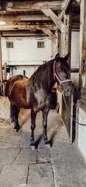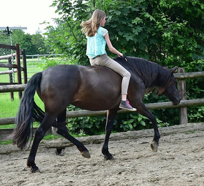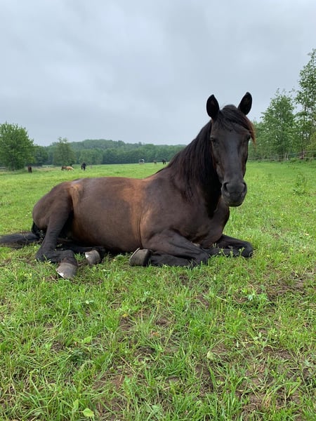 For our gentle black mare (in summer she is brown), I am looking for a new, lovely home with caring people. She is very easy to handle and well-mannered. No rearing, bucking, biting, or bolting. She is comfortable to ride and is therefore ideally suited for children, nervous riders (also for therapeutic purposes), and beginners up to 65 kg. She especially likes children and women! Due to her age (20 years) and a minimal riding restriction, she is mostly ridden at a walk in the countryside. In the field, she is a safety net and can go out alone or in a group. She is also familiar with walks, lunging, and groundwork. She lives in a paddock and is very low in the hierarchy there. She is also accustomed to box stabling. She does not cling to other horses. If everything fits, she could also be made available, but only here in the vicinity. She is regularly dewormed, vaccinated, and has seen the dentist every year. Her complete tack will be sold with her (fitting dressage saddle from Prestige, Schumacher bridle, blankets, and so on). Since I have another horse, I unfortunately cannot give her the time she deserves. This is not an urgent sale! I am only giving her to the very best hands. No dealers!! Further information gladly by phone.