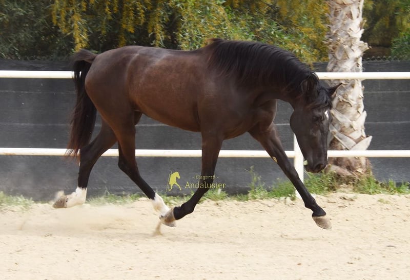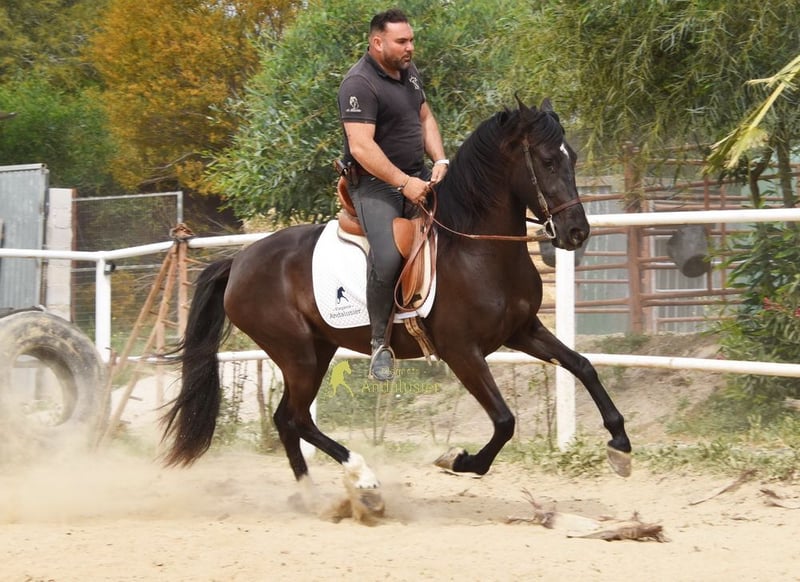 lieber Charakter mit etwas Temperament, in den Grundgangarten geritten, gute Bewegungen www.elegante-andalusier.com