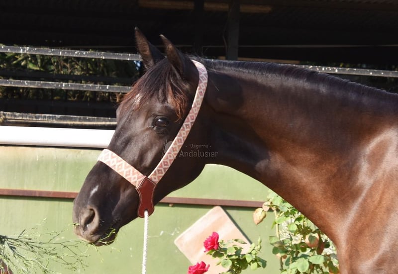 lieber Charakter mit etwas Temperament, in den Grundgangarten geritten, gute Bewegungen www.elegante-andalusier.com