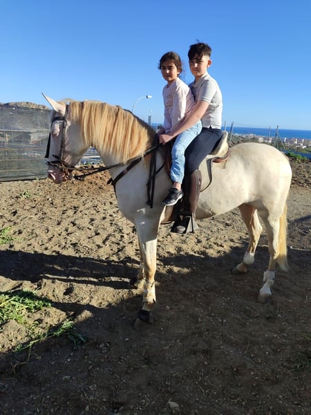 Andalusische Stute. Ohne Pedigree, nur Pass vorhanden. Misst 1,59 m mit Stockmaß. Sehr temperamentvoll und freundlich im Umgang mit Kindern und Anfängern. Außerordentlich liebevoll. Eine zuverlässige Stute für die ganze Familie. Mit viel Herz. Therapieeinsatz mit Kindern möglich. Kontakt: WhatsApp: +34 612 219 256 E-Mail: info.equsur@gmail.com