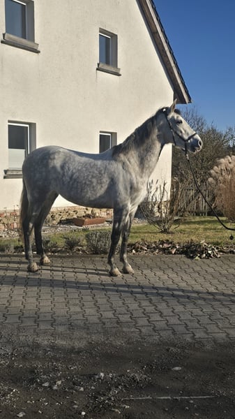 Wir verkaufen eine bildhübsche Andalusierstute. Tormenta ist 8 Jahre alt und hat eine Größe von 1,60m. Sie ist sehr rittig ob im Gelände oder auf dem Platz. Tormenta ist eine Stute die jedem gefallen möchte unter dem Sattel und das zeigt sie auch. Wir haben angefangen mit ihr Seitengänge zu reiten was sie sehr schnell lernt. Sie ist am Anfang ihrer reiterlichen Karriere und ich denke sie passt gut in die working ecquitation aber auch als gehobenes Freizeitpferd. Tormenta lebt bei uns im Offenstall in einer gemischten Herde. Wenn sie euer Interesse geweckt hat dann schreibt mir oder ruft einfach an 0163 9840641 da kann ich alle weiteren Fragen beantworten