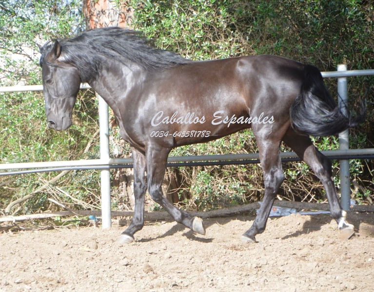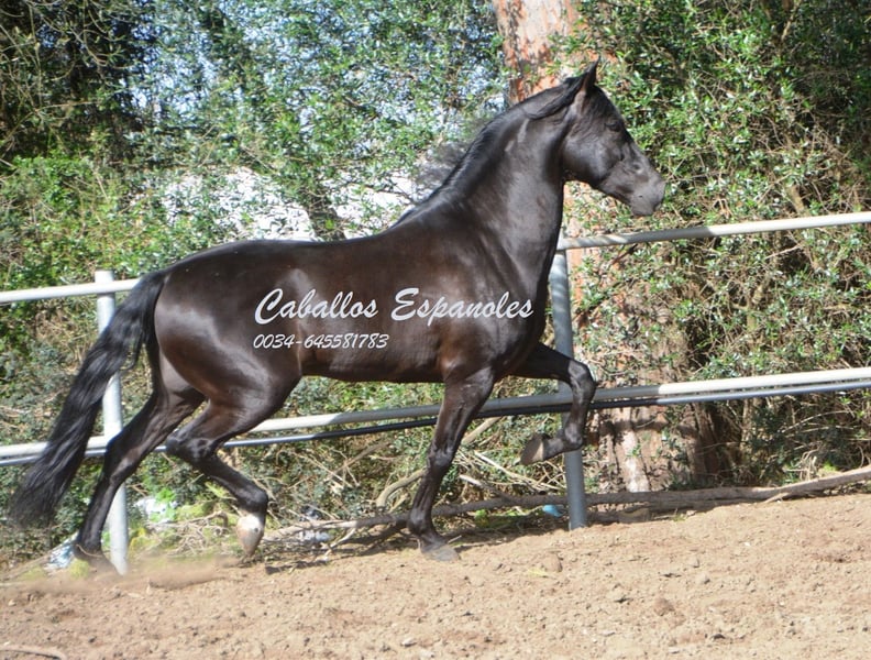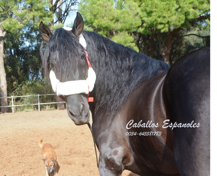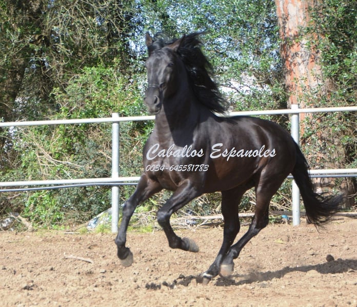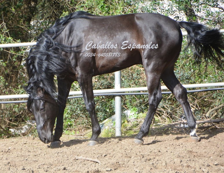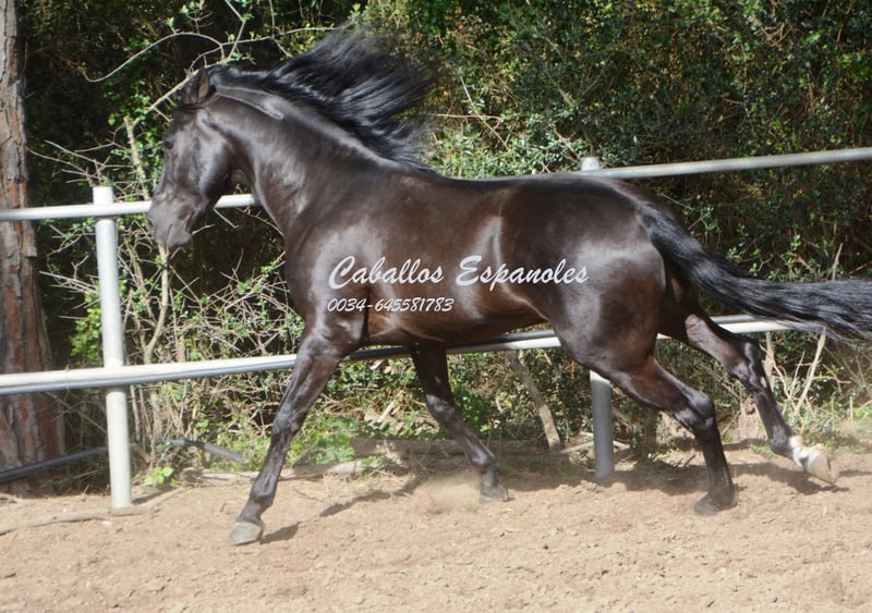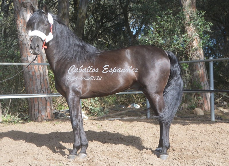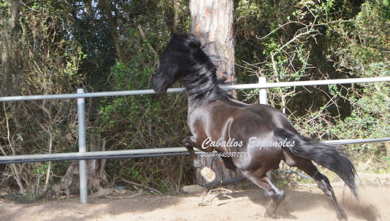 Ten czarny andaluzyjski ogier to uczta dla oczu. Ten fantastyczny czarny ogier jest wyposażony w trzy bardzo dobre podstawowe chody. Chody boczne, piaffe w ręku i hiszpański chód w ręku. Jest pracowity i nieustraszony na arenie, w terenie lub w Romerias. Koń jest sprzedawany na zlecenie. Może zostać z nami w treningu. AKU może być zorganizowane w krótkim czasie. Transport międzynarodowy.
