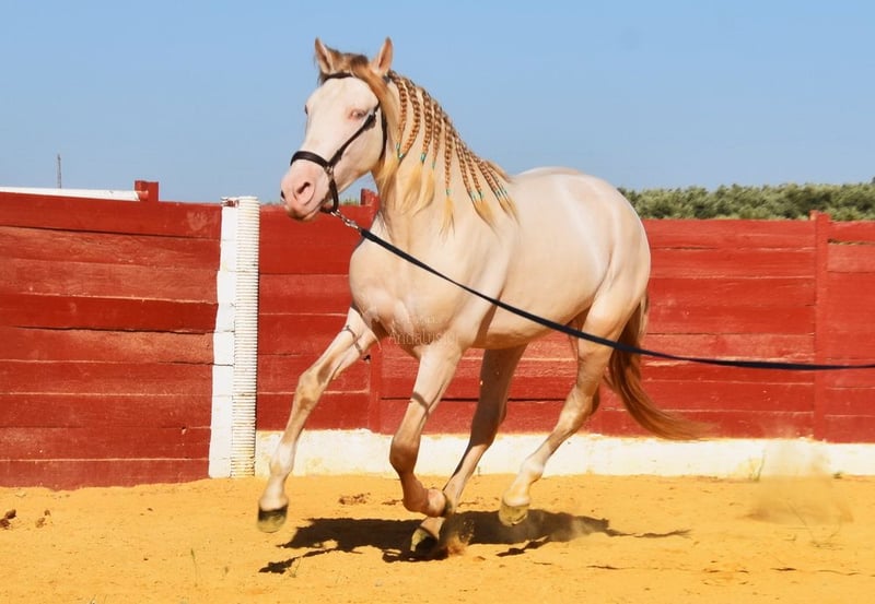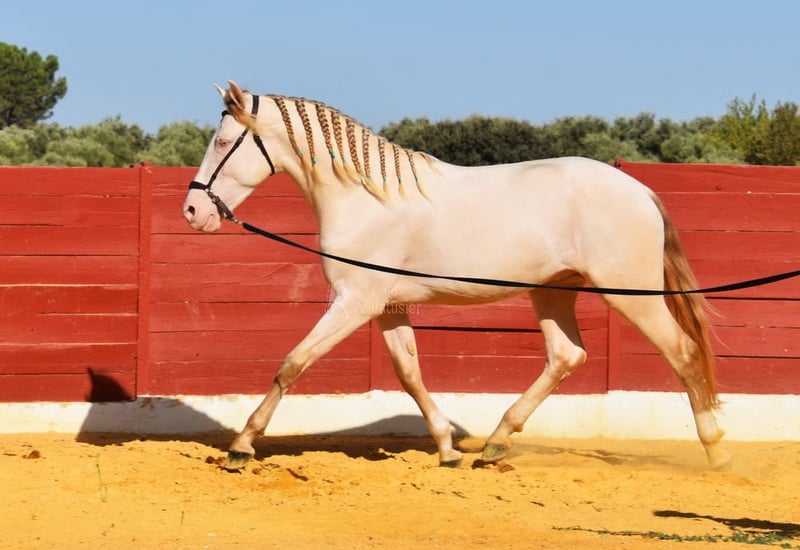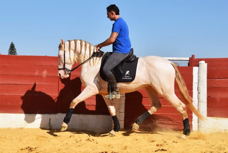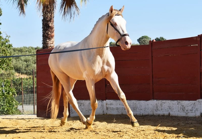 Lieve karakter met aangenaam temperament, nieuwsgierig, aanhalig, speels, ongetraind, staat buiten met ruinen, speciale kleur, goede bewegingen www.elegante-andalusier.com