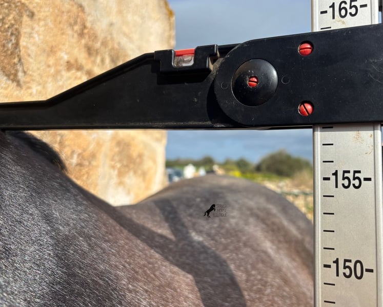 Dieser 2021 geborene, reinrassige PRE Hengst (Andalusier mit Rassenachweis der ANCCE), kommt von einem sehr pferdefreundlichen Züchter. Bis 3.5 Jahre durfte der Bursche komplett roh in der Hengstherde aufwachsen und einfach Pferd sein und seine Sozialkontakte bestens pflegen. Nun lebt er in einer großen Paddockbox und als Nachbarn hat er seine Kumpels, mit denen er großwerden durfte. Diese Aufzucht und Haltung macht sich bezahlt, denn er ist absolut tiefenentspannt, dem Menschen gegenüber sehr achtsam und selbst wenn ihm beim Putzen ein Pony am Schweif herumzupft, weil der Paddock neben dem Putzplatz ist, wackelt er nicht einmal mit den Ohren. Er ist ein ganz ruhiger und in sich ruhender Bub, was auch in der Ausbildung berücksichtigt wird. So wird weder mit Hast noch Unruhe gearbeitet, sondern ihm wird Zeit gegeben und er ist zwar im Ausbildungsstand eher mit einem 4jährigen zu Vergleichen, aber das ist nur ein Vorteil, wenn man weiß und merkt, es wird schonend gearbeitet (aktuell 3x pro Woche). Es werden immer wieder Ruhephasen am langen Zügel gemacht und er lernt immer besser sich zu strecken, was schön zu sehen ist. Trotz steiniger Böden geht er auch im Gelände problemlos barhuf und hin und wieder den Reitplatz gegen einen schönen Ausritt zu tauschen, das mag er auch gerne. Schon als Fohlen war er sehr barock und sein Exterieur ist vom "alten Schlag". Dafür steht auch seine Abstammung, denn er ist MONIS, SA SINIA, CAMPO BAJO und YEGUADA MILITAR gezogen (Cartujano). Mit aktuell 157cm ist seine Größe auch harmonisch zum Exterieur und er ist kompakt, dabei aber wendig, was ihn auch für die Working Equitation oder Westernreiten interessant macht. Unterm Reiter ist er mit der Aufmerksamkeit immer beim Menschen und sehr bemüht. Er hält auch schon relativ gut den Kontakt, aber altersbedingt braucht er noch etwas mehr Gleichgewicht und Schub von hinten (wie gesagt, er wird nicht gehetzt in der Ausbildung sondern langsam aufgebaut). Er wird auf Wassertrense geritten und laterale Arbeiten sind angefangen- ansonsten hat er eine stabile Basisausbildung. Auch im Umgang ist er ein Gentleman, sei es beim Hufe geben oder satteln (Videos vorhanden). An der Hand lernt er den spanischen Schritt und hat beim Standbild gezeigt, wie gut er den kann und wie schön seine Schulterfreiheit ist ;) Für all jene, denen keinen Hengsthaltung möglich ist, besteht selbstverständlich die Option der Kastration vor Ort. Sein zu erwartendes Endmaß wird um die 160cm, jedoch durch sein barockes Erscheinungsbild wirkt er größer und deckt sehr gut ab. Sein Standort ist Menorca. Videos und Abstammung gerne auf Anfrage. Gerne organisiere ich vor Ort eine AKU, Beritt, Kastration, Transport oder auch ihre Reise, sollten Sie persönlich zum Anschauen kommen. Details dazu gerne auf meiner Seite oder im Gespräch. Saludos aus Spanien